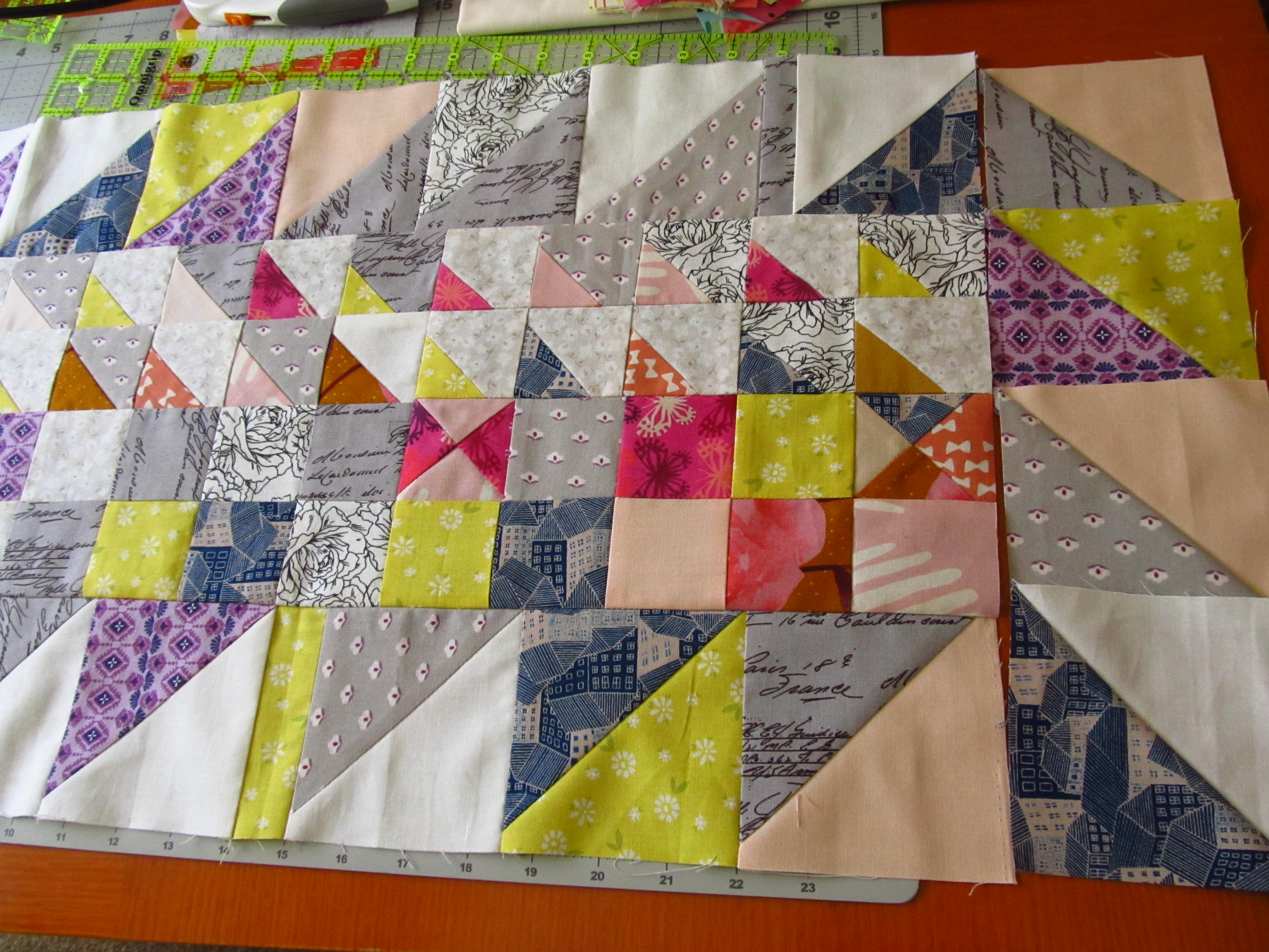 The two HSTs in the top left are sewn in upside down, need to be taken out.